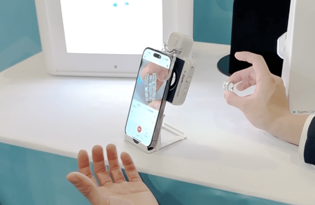 GemSparkle is designed for mobile use, allowing jewelers to capture clean images and short videos using a smartphone while maintaining controlled lighting.